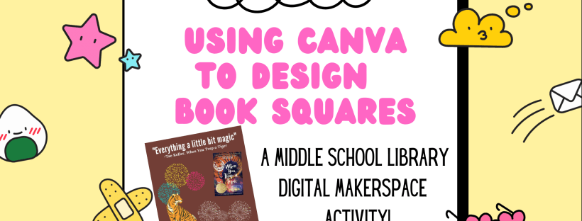 The book squares created in this activity can be printed for display on the library bulletin board, and also posted (with permission) on the library Instagram account.