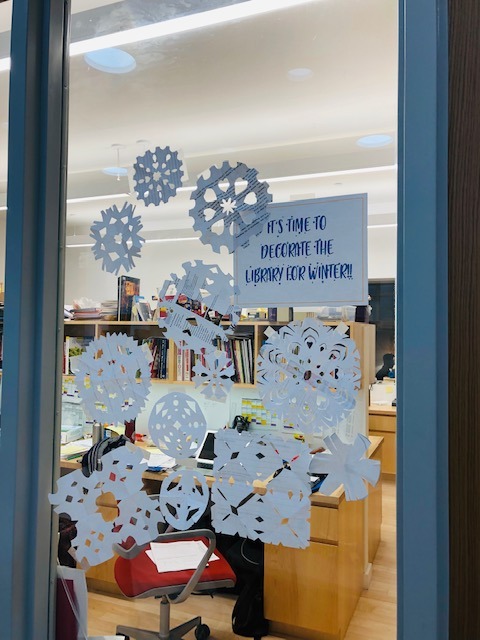 Our autumn leaves have been replaced by decorative paper snowflakes! Thanks to all of the middle schoolers who cut out these recycled snowflakes during breaktime. While we had some templates available, many students decided to be creative and try out their own designs!